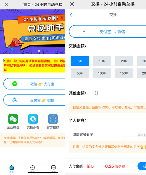平台不触碰资金,全由微信支付宝QQ自动交换。